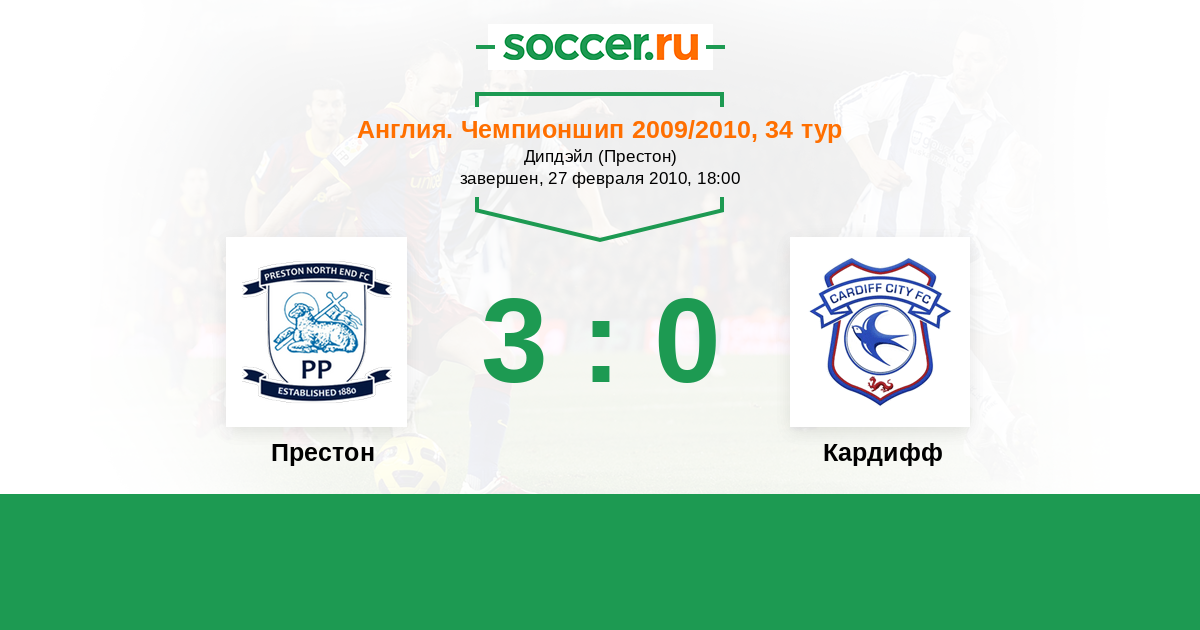 Англия. Чемпионшип 18.04.2009 Престон Логотип футбольный клуб Престон 6:0 Логотип футбольный клуб Кардифф Кардифф