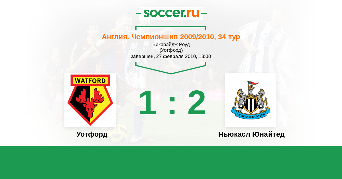 Англия. Чемпионшип 05.12.2009 Ньюкасл Юнайтед Логотип футбольный клуб Ньюкасл Юнайтед (Ньюкасл-апон-Тайн) 2:0 Логотип футбольный клуб Уотфорд Уотфорд