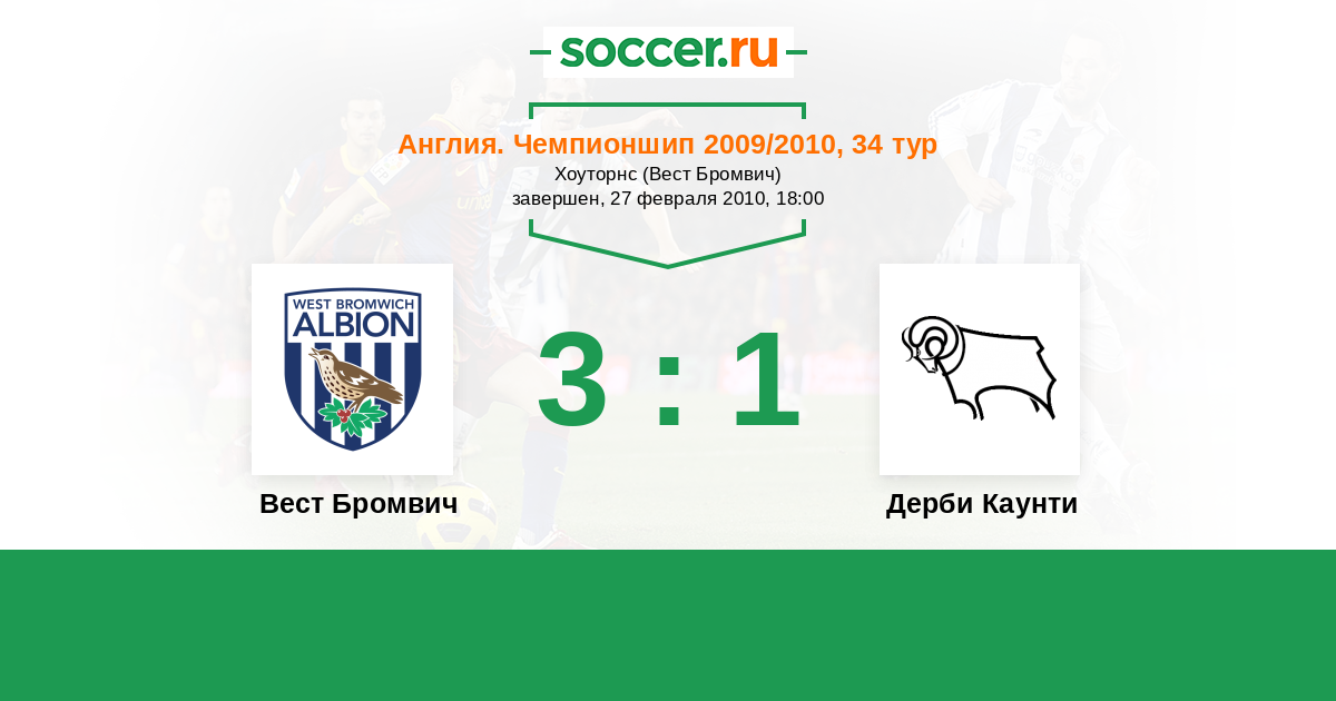 История матча Вест Бромвич против Дерби Каунти