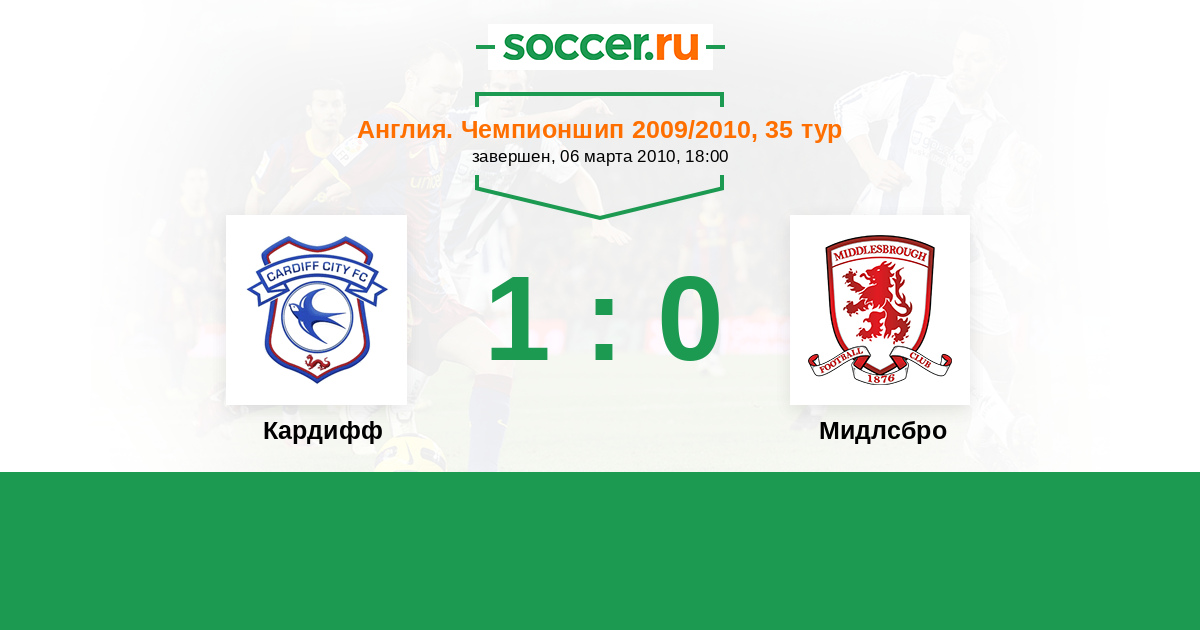 Англия. Чемпионшип 13.12.2009 Мидлсбро Логотип футбольный клуб Мидлсбро 0:1 Логотип футбольный клуб Кардифф Кардифф