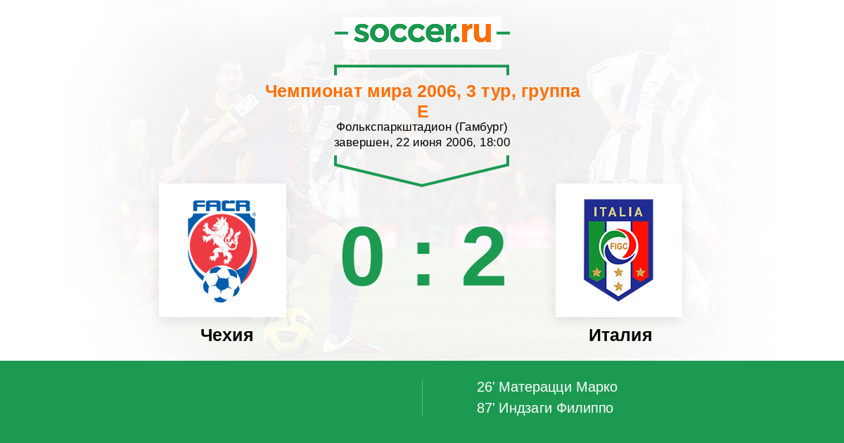 17' Неста Алессандро (13) уходит с поля, Матерацци Марко (23) вышел на поле