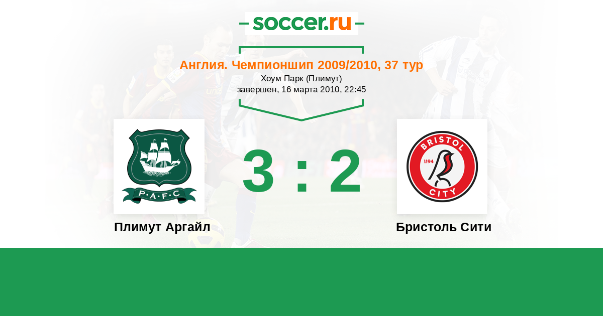 Англия. Чемпионшип 20.10.2009 Бристоль Сити Логотип футбольный клуб Бристоль Сити 3:1 Логотип футбольный клуб Плимут Аргайл Плимут Аргайл