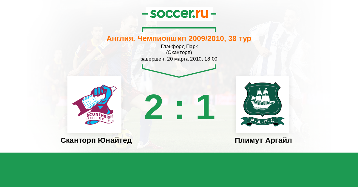 Англия. Чемпионшип 03.10.2009 Плимут Аргайл Логотип футбольный клуб Плимут Аргайл 2:1 Логотип футбольный клуб Сканторп Юнайтед Сканторп Юнайтед