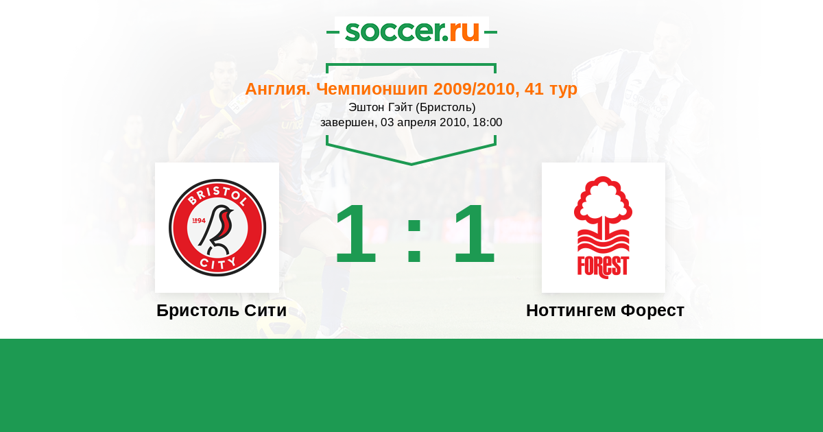 Англия. Чемпионшип 07.11.2009 Ноттингем Форест Логотип футбольный клуб Ноттингем Форест 1:1 Логотип футбольный клуб Бристоль Сити Бристоль Сити