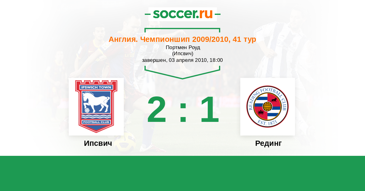 Англия. Чемпионшип 28.09.2010 Рединг Логотип футбольный клуб Рединг 1:0 Логотип футбольный клуб Ипсвич Ипсвич