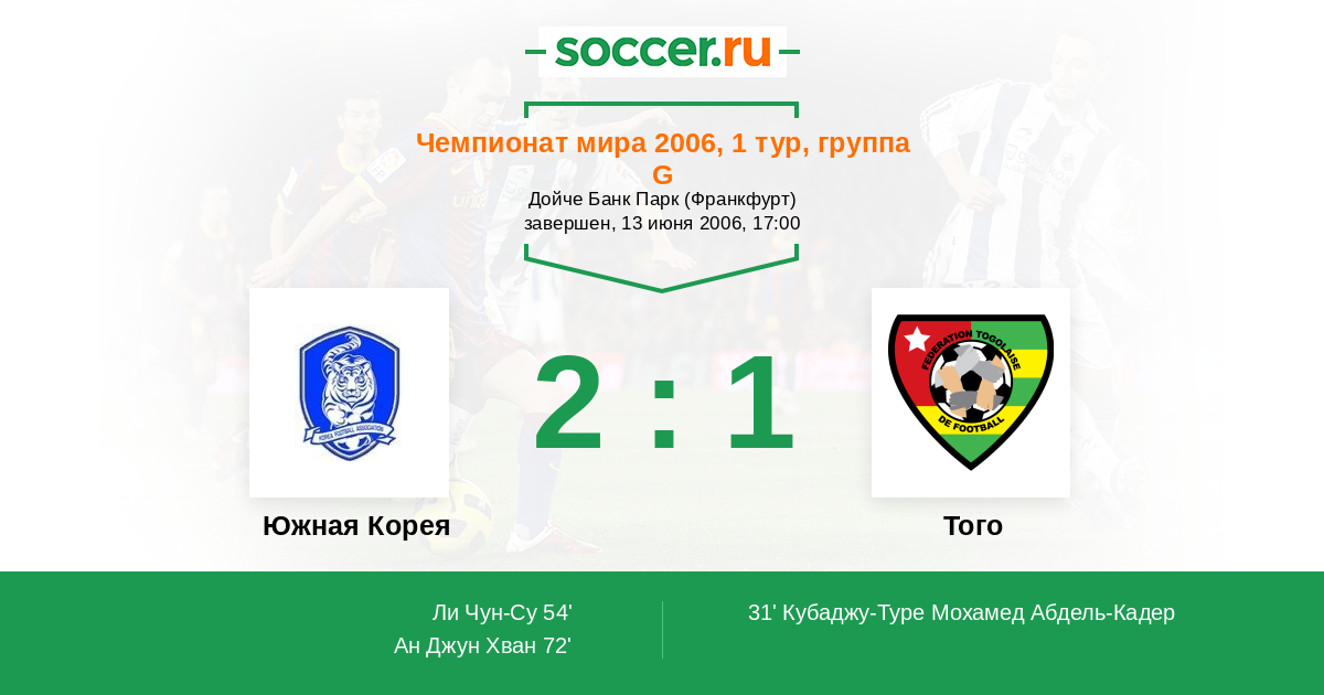 Протокол матча Южная Корея против Того