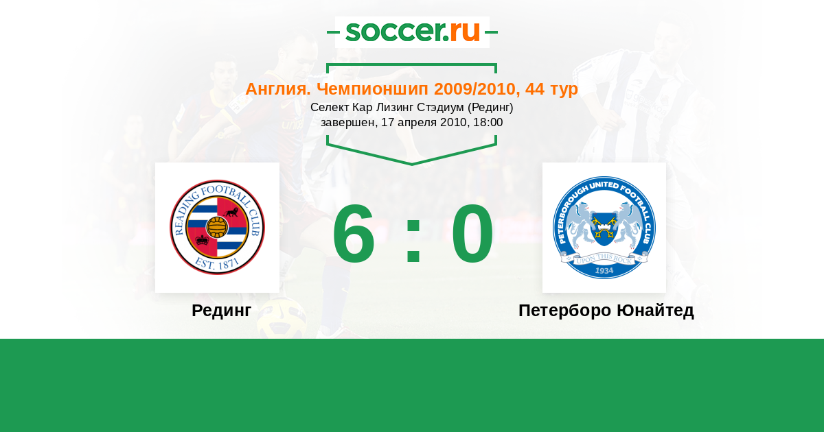 Англия. Чемпионшип 19.09.2009 Петерборо Юнайтед Логотип футбольный клуб Петерборо Юнайтед 3:2 Логотип футбольный клуб Рединг Рединг