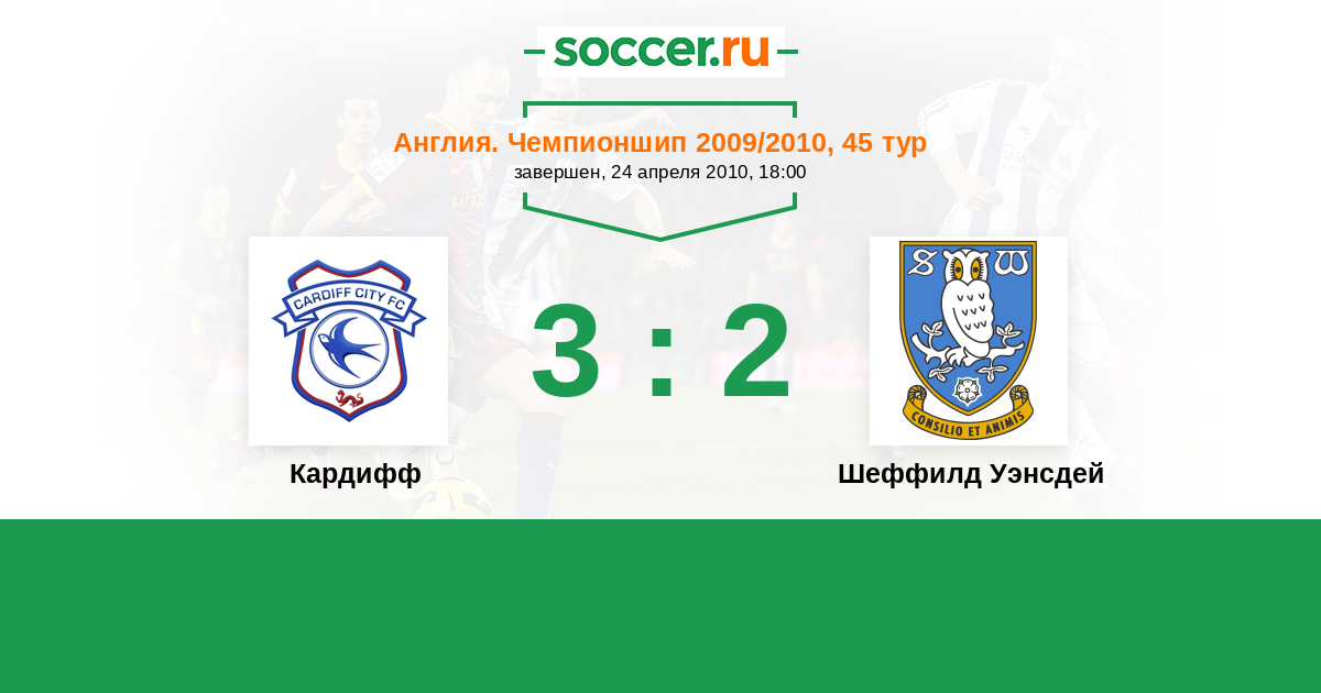 Англия. Чемпионшип 03.05.2009 Шеффилд Уэнсдей Логотип футбольный клуб Шеффилд Уэнсдей 1:0 Логотип футбольный клуб Кардифф Кардифф