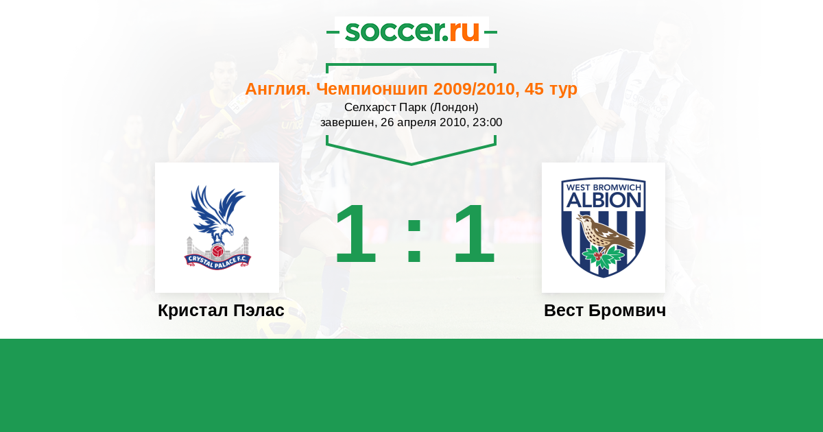История матча Кристал Пэлас против Вест Бромвич