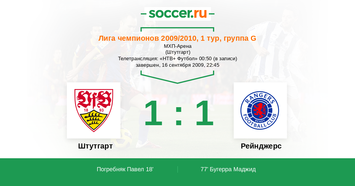 Протокол матча Штутгарт против Рейнджерс