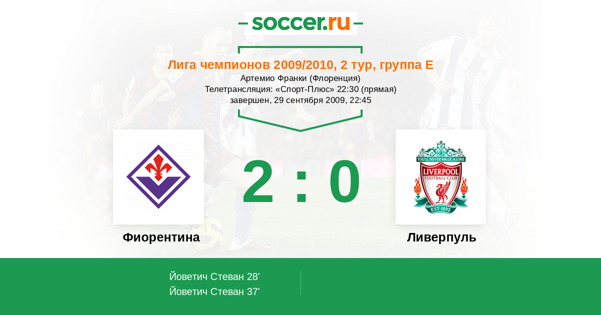 Протокол матча Фиорентина против Ливерпуль