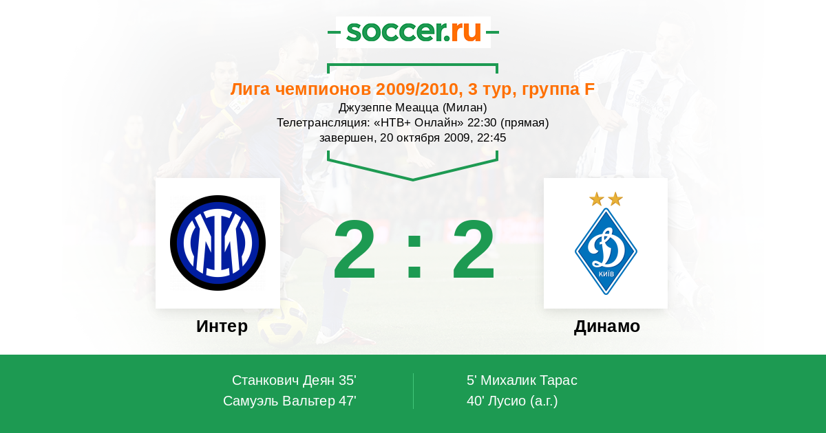 Протокол матча Интер против Динамо