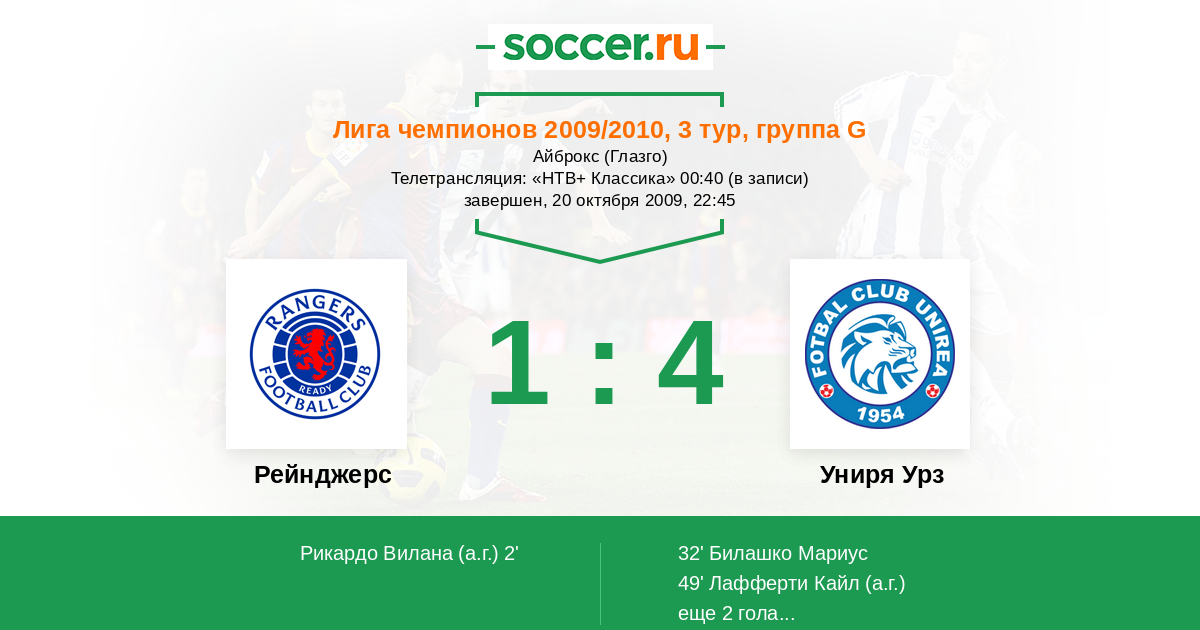 Протокол матча Рейнджерс против Униря Урз