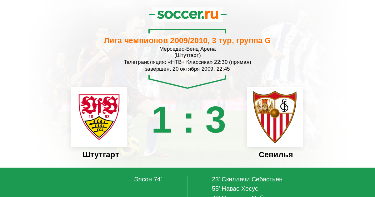 Протокол матча Штутгарт против Севилья