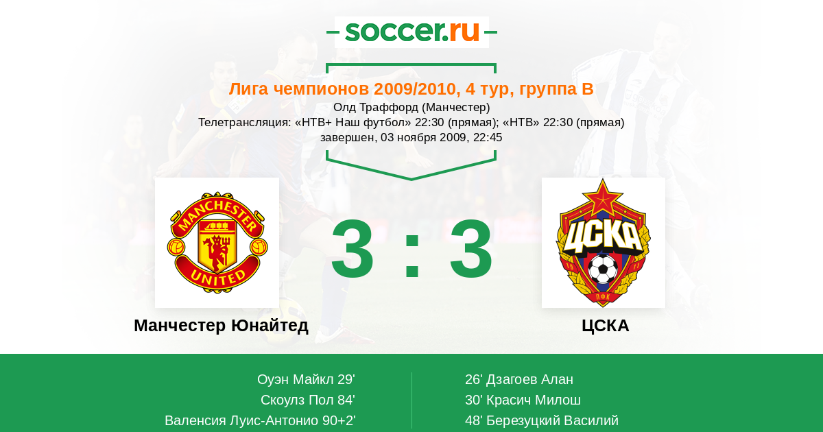 Протокол матча Манчестер Юнайтед против ЦСКА