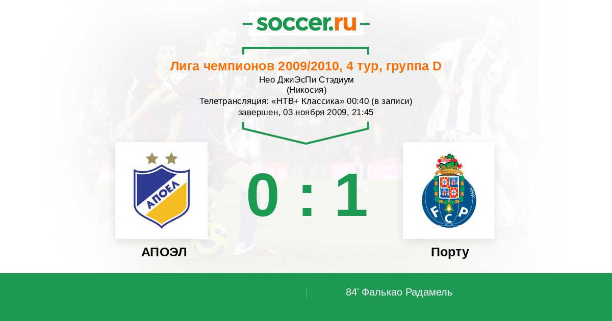 84' (0:1) Фалькао Радамель (9) (Фариас Эрнесто (19))