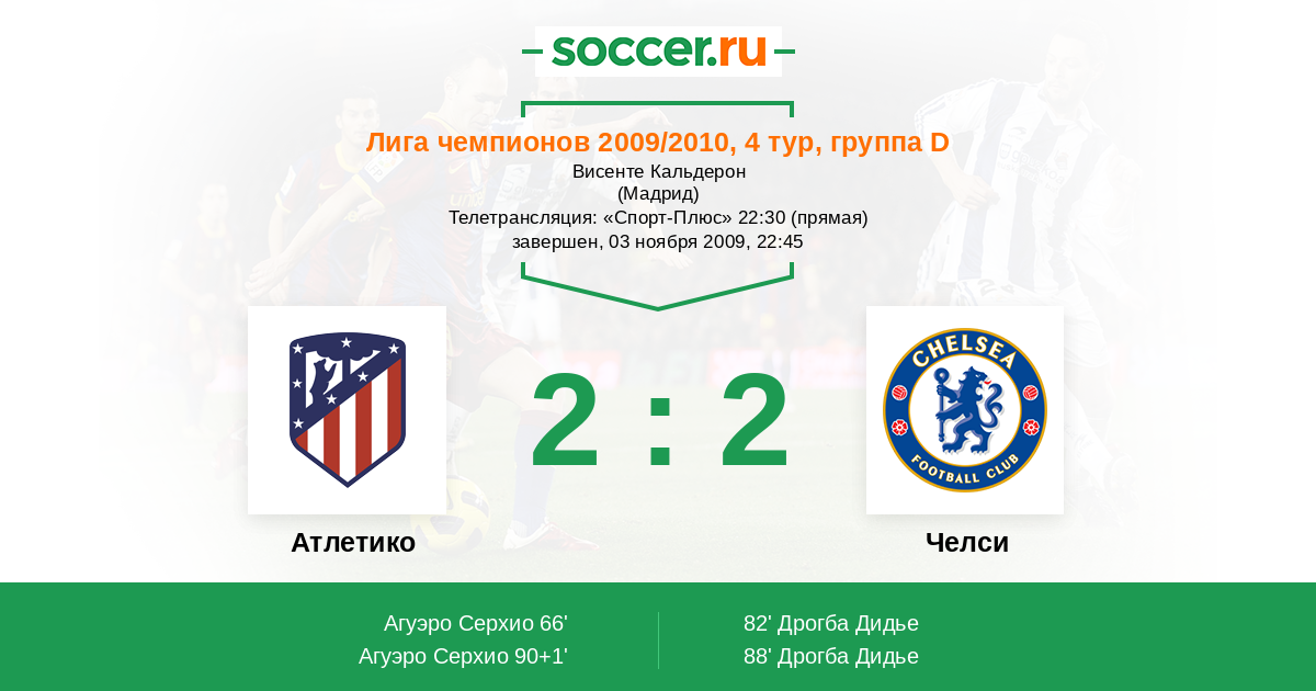 Протокол матча Атлетико против Челси