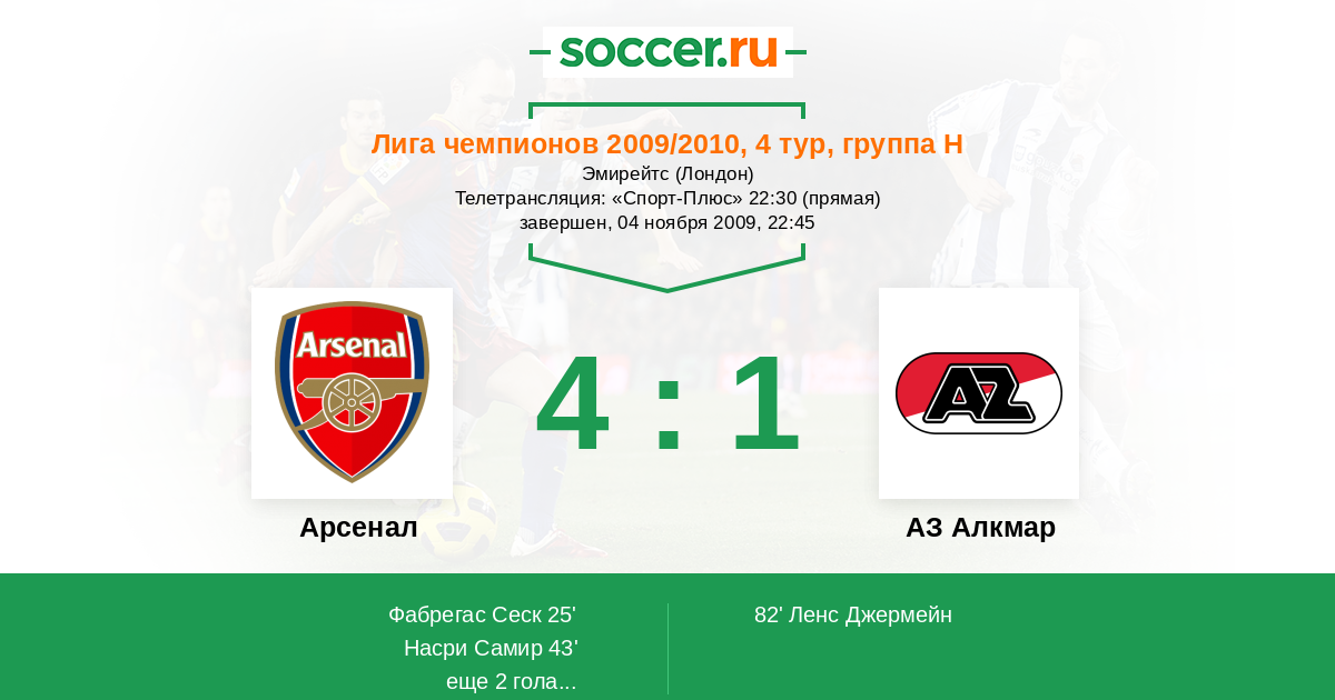 Протокол матча Арсенал против АЗ Алкмар