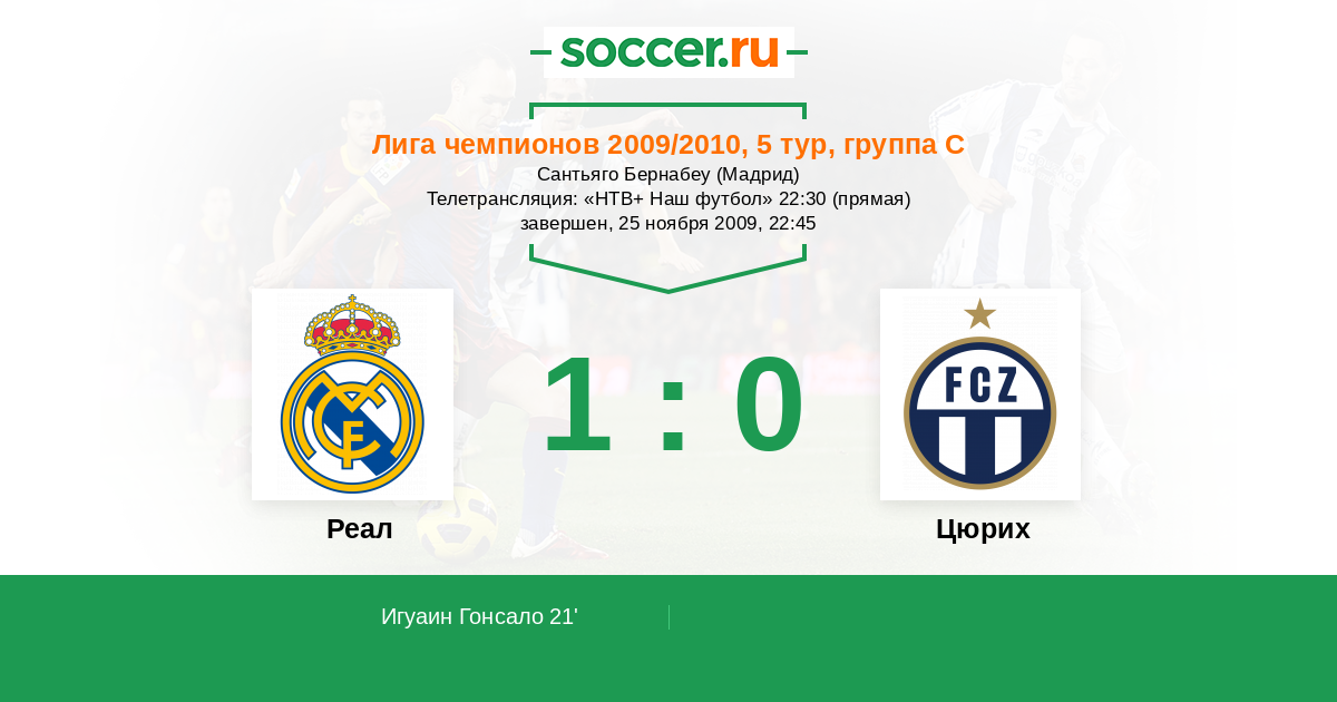 Протокол матча Реал против Цюрих