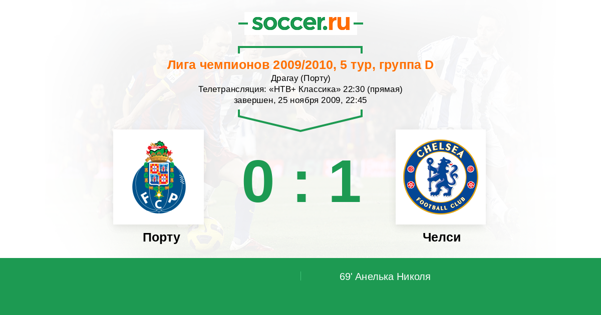Протокол матча Порту против Челси