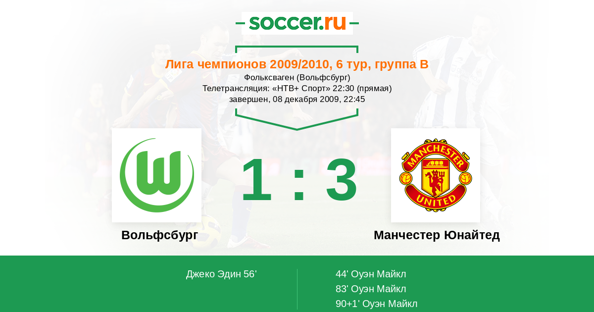 Протокол матча Вольфсбург против Манчестер Юнайтед