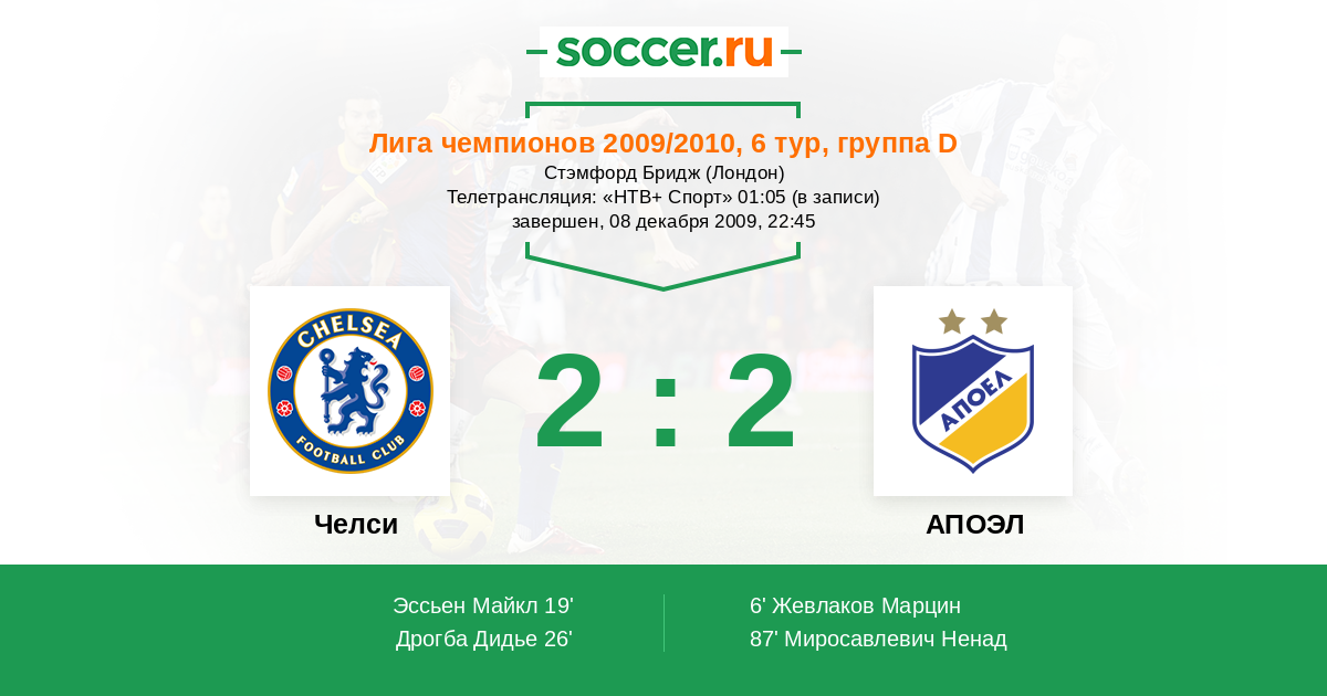 Протокол матча Челси против АПОЭЛ