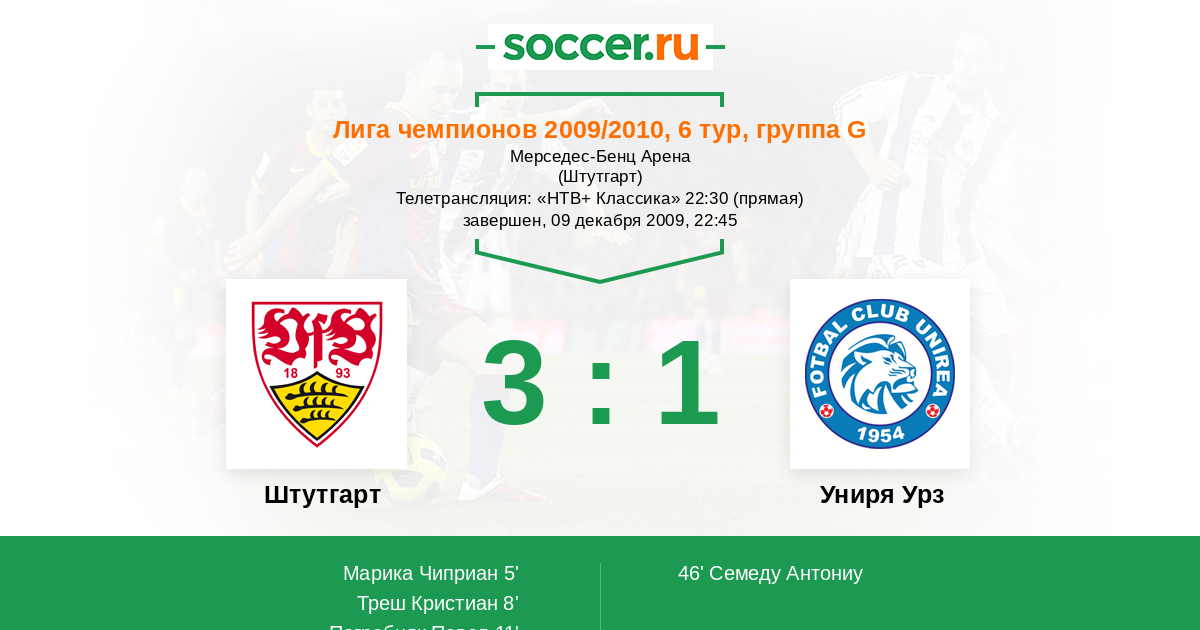 Протокол матча Штутгарт против Униря Урз