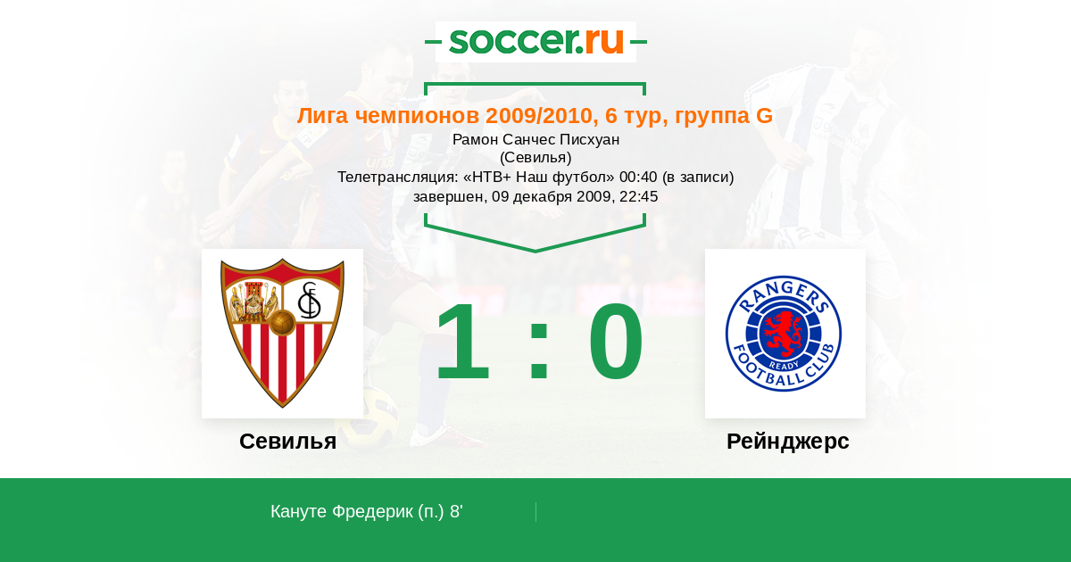 Протокол матча Севилья против Рейнджерс
