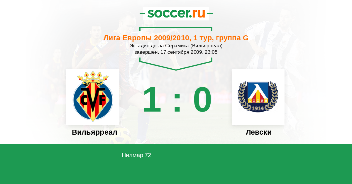 Протокол матча Вильярреал против Левски