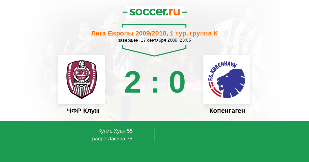 Протокол матча ЧФР Клуж против Копенгаген