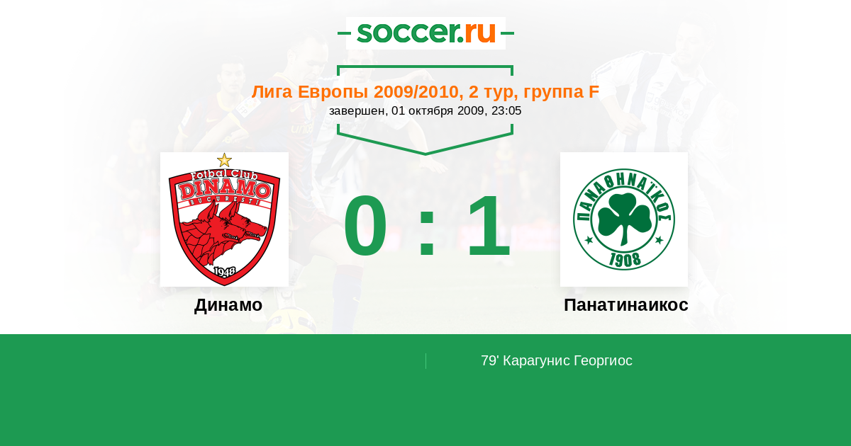 Протокол матча Динамо против Панатинаикос