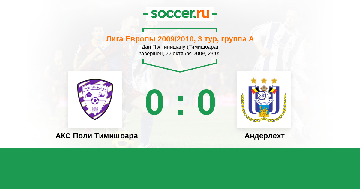Протокол матча АКС Поли Тимишоара против Андерлехт