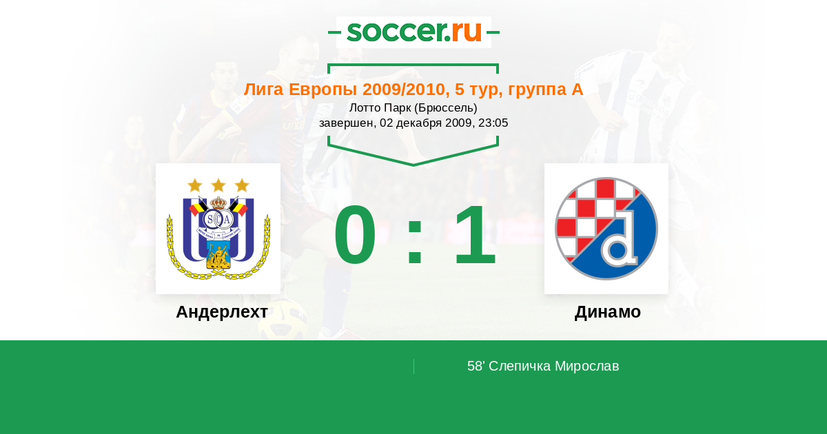Протокол матча Андерлехт против Динамо