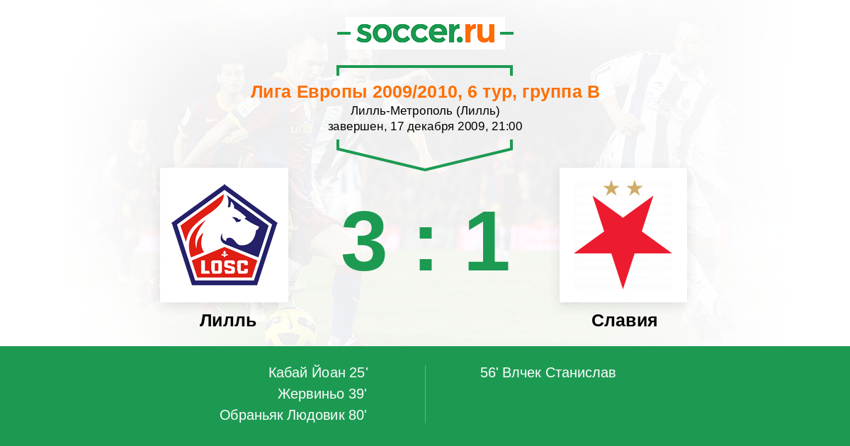 Протокол матча Лилль против Славия