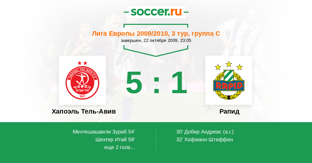 Протокол матча Хапоэль Тель-Авив против Рапид