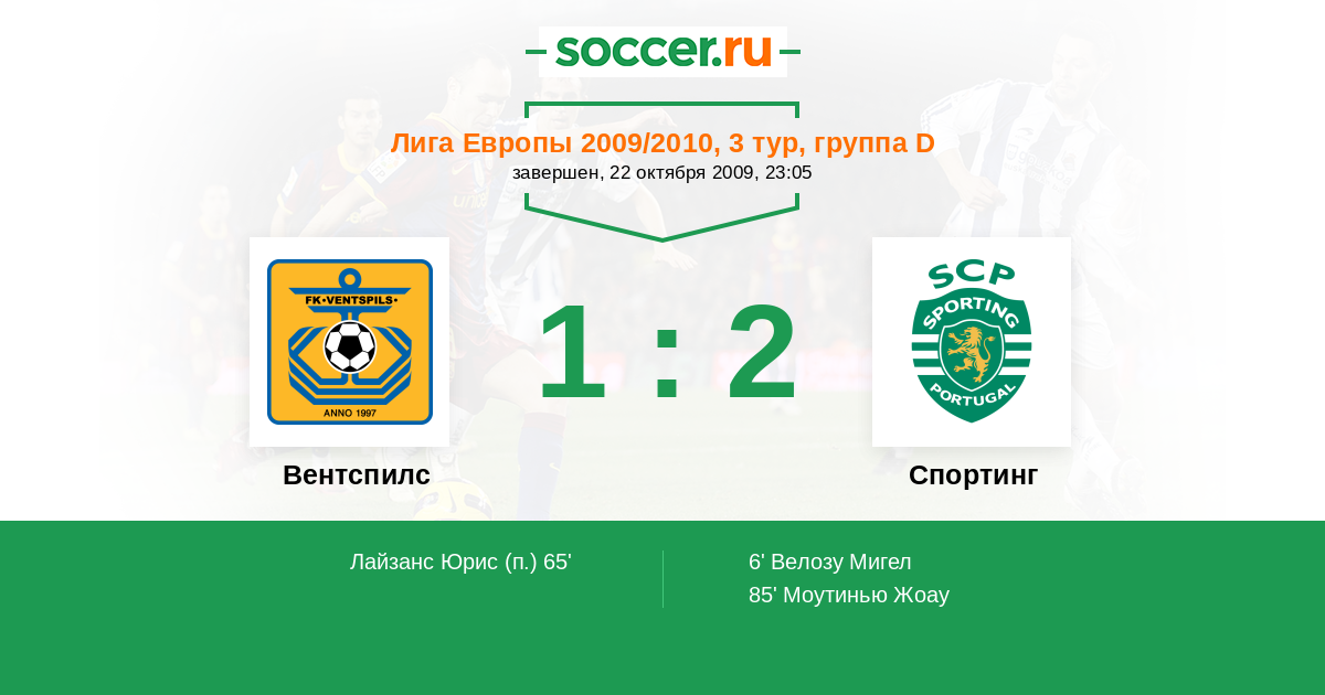 Протокол матча Вентспилс против Спортинг