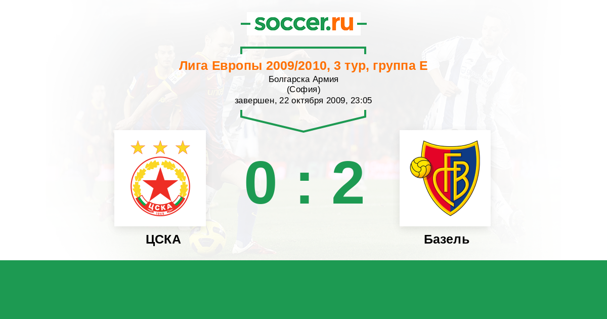 Протокол матча ЦСКА против Базель
