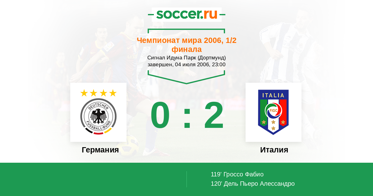 Протокол матча Германия против Италия