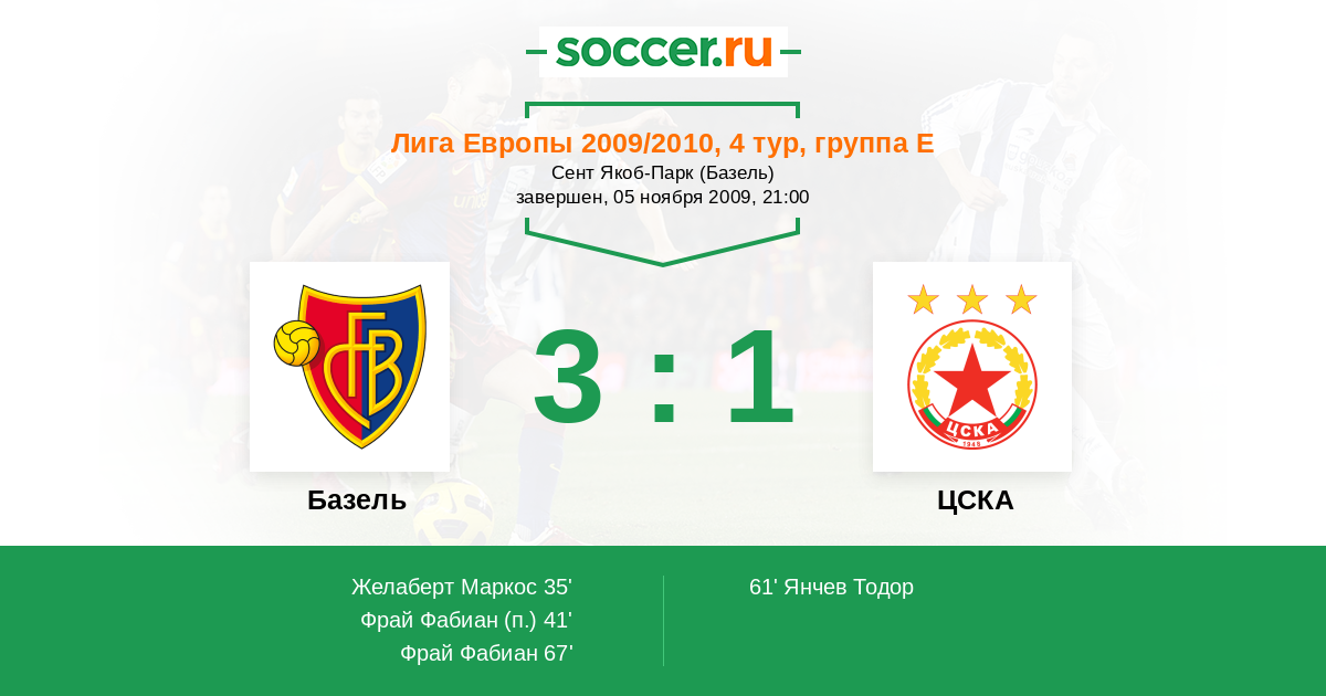 Протокол матча Базель против ЦСКА
