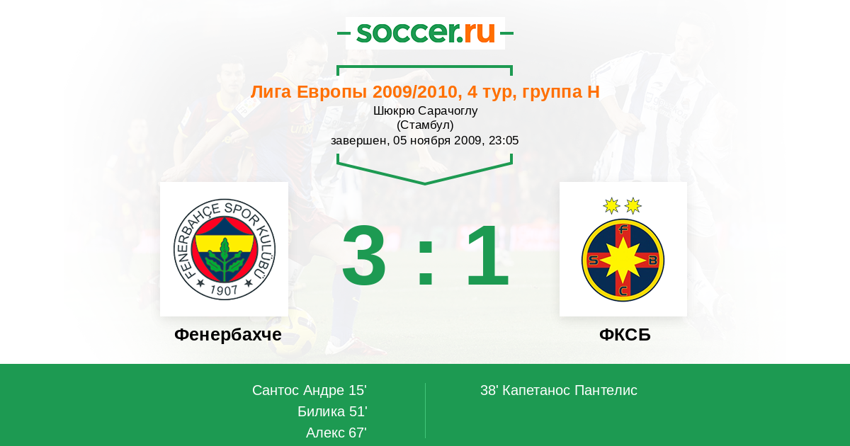 Протокол матча Фенербахче против Стяуа