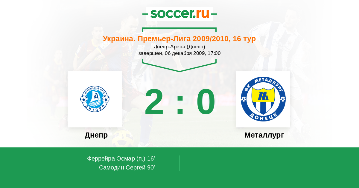 Протокол матча Днепр против Металлург