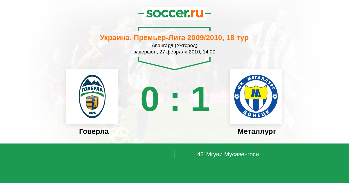Протокол матча Говерла против Металлург