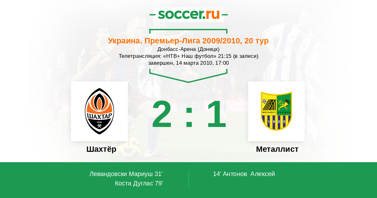 Протокол матча Шахтёр против Металлист