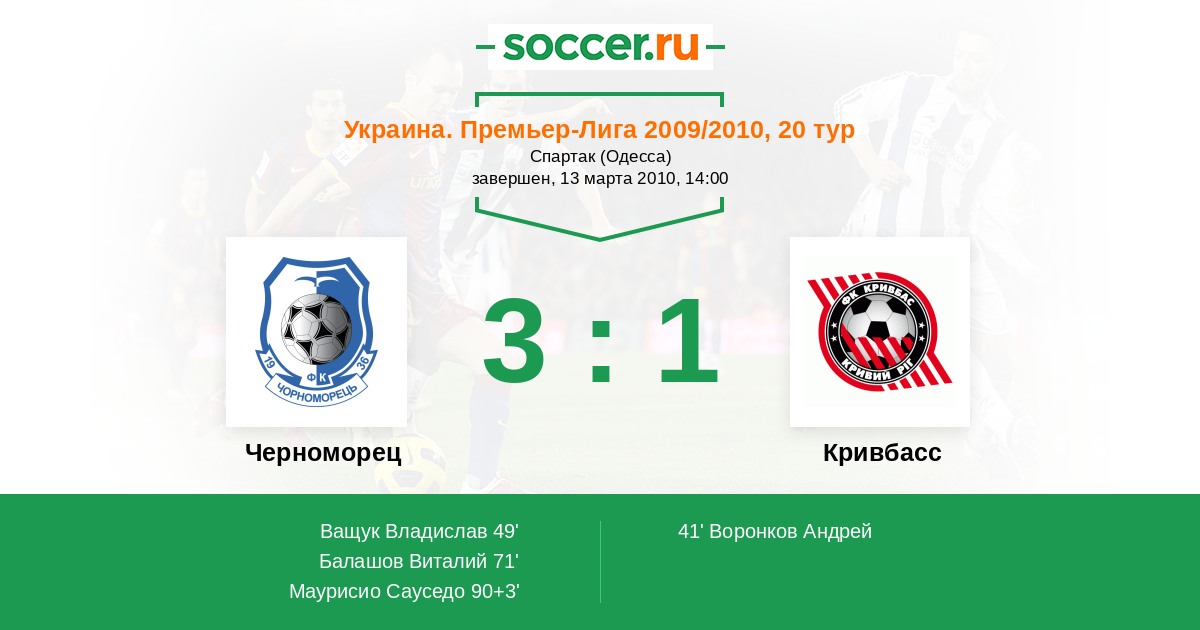 Протокол матча Черноморец против Кривбасс