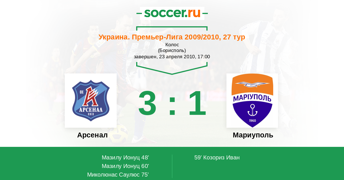 Протокол матча Арсенал против Ильичевец