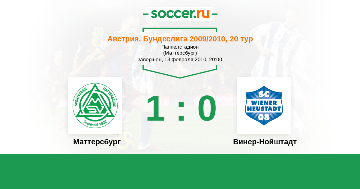 Австрия. Бундеслига 04.12.2009 Маттерсбург Логотип футбольный клуб Маттерсбург 1:3 Логотип футбольный клуб Винер-Нойштадт Винер-Нойштадт