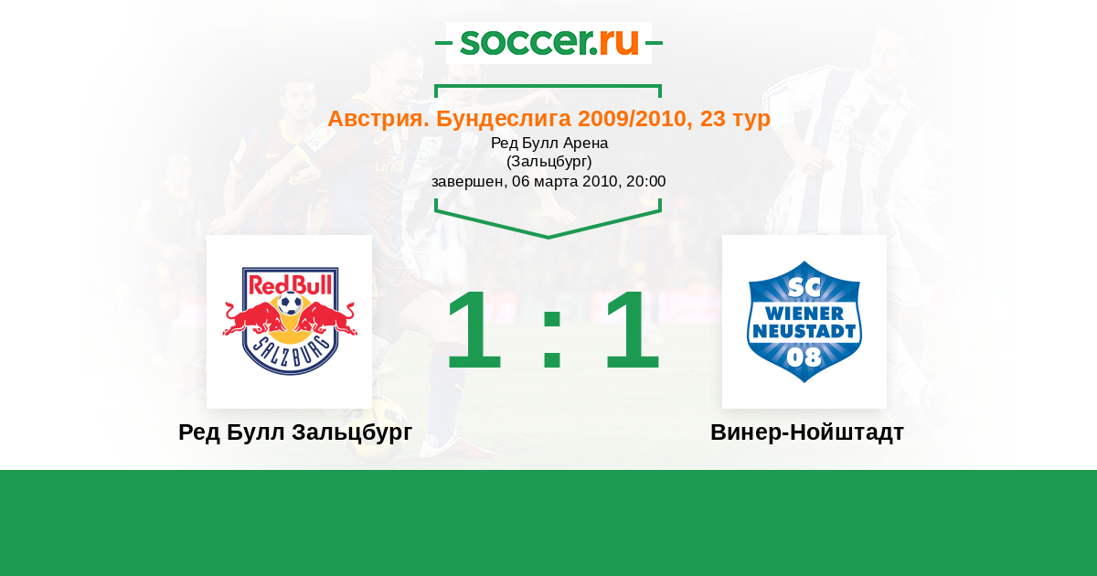 Австрия. Бундеслига 22.08.2009 Винер-Нойштадт Логотип футбольный клуб Винер-Нойштадт 1:1 Логотип футбольный клуб Ред Булл Зальцбург Ред Булл Зальцбург
