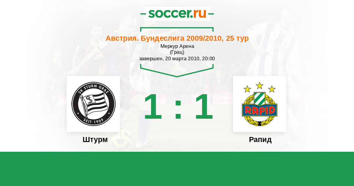 Австрия. Бундеслига 09.04.2011 Рапид Логотип футбольный клуб Рапид (Вена) 0:2 Логотип футбольный клуб Штурм (Грац) Штурм