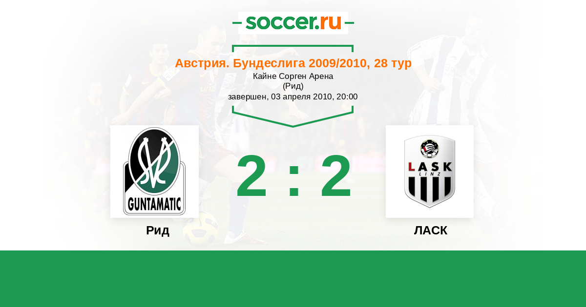 Австрия. Бундеслига 28.03.2010 ЛАСК Логотип футбольный клуб ЛАСК (Линц) 3:0 Логотип футбольный клуб Рид Рид