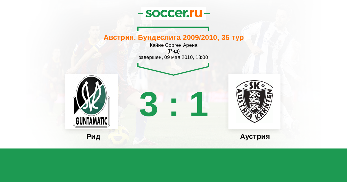 История матча Рид против Аустрия